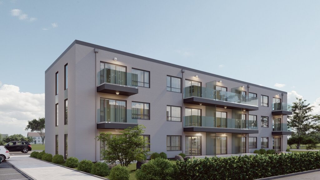 Amplasat intr-o zona rezidentiala cu locuinte colective si regim de inaltime redus, in apropierea capitalei Islandei, acest bloc cu doua etaje si 23 de apartamente, respecta arhitectura cladirilor din jur, integrandu-se in mod natural in peisajul zonei. Suprafata construita desfasurata este de aproximativ 1500 mp. Deoarece ansamblul de blocuri este situat intr-o zona cu multe izvoare calde, s-a folosit energia geotermala pentru alimentarea locuintelor cu apa calda si caldura. Structura metalica usoara, placarile fatadei, balustradele metalice, vitrajele ample, precum si materialele moderne si de inalta calitate utilizate ofera cladirii confort si modernism.