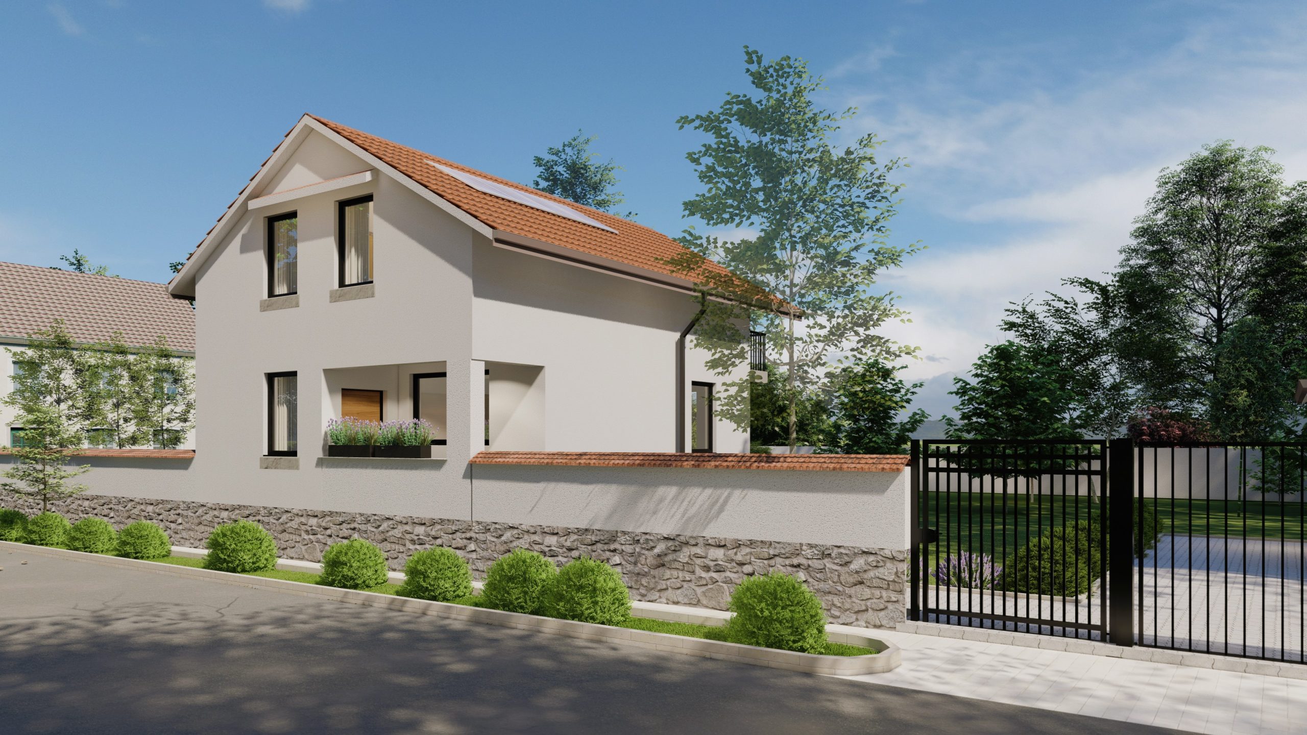 Stilul tradițional, cu linii clare și simple, rămâne mereu actual, reprezentând cultura și identitatea noastră. Această casă unifamilială din Prejmer, concepută în stil tradițional pentru a se integra armonios în peisajul local, este proiectată și construită folosind tehnologii și materiale moderne, respectând astfel toate cerințele funcționale, estetice și legislative actuale.