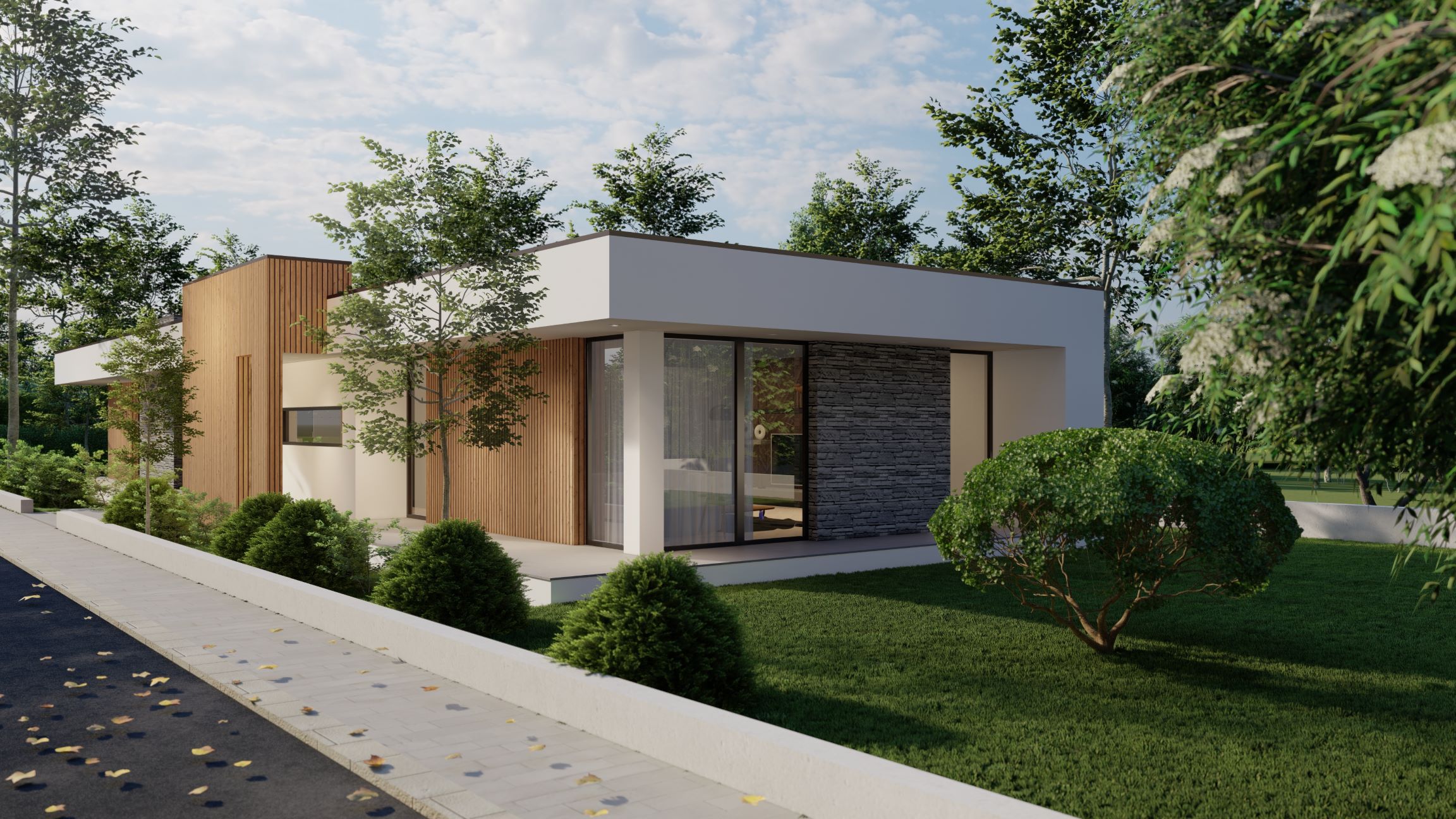 Această casă modernă combină funcționalitatea cu estetica, fiind proiectată să ofere un confort optim într-un spațiu bine organizat și atractiv vizual. Fiind adaptabilă pentru terenuri înguste, reușește să maximizeze eficient spațiul disponibil, fiind o alegere excelentă pentru familiile moderne.