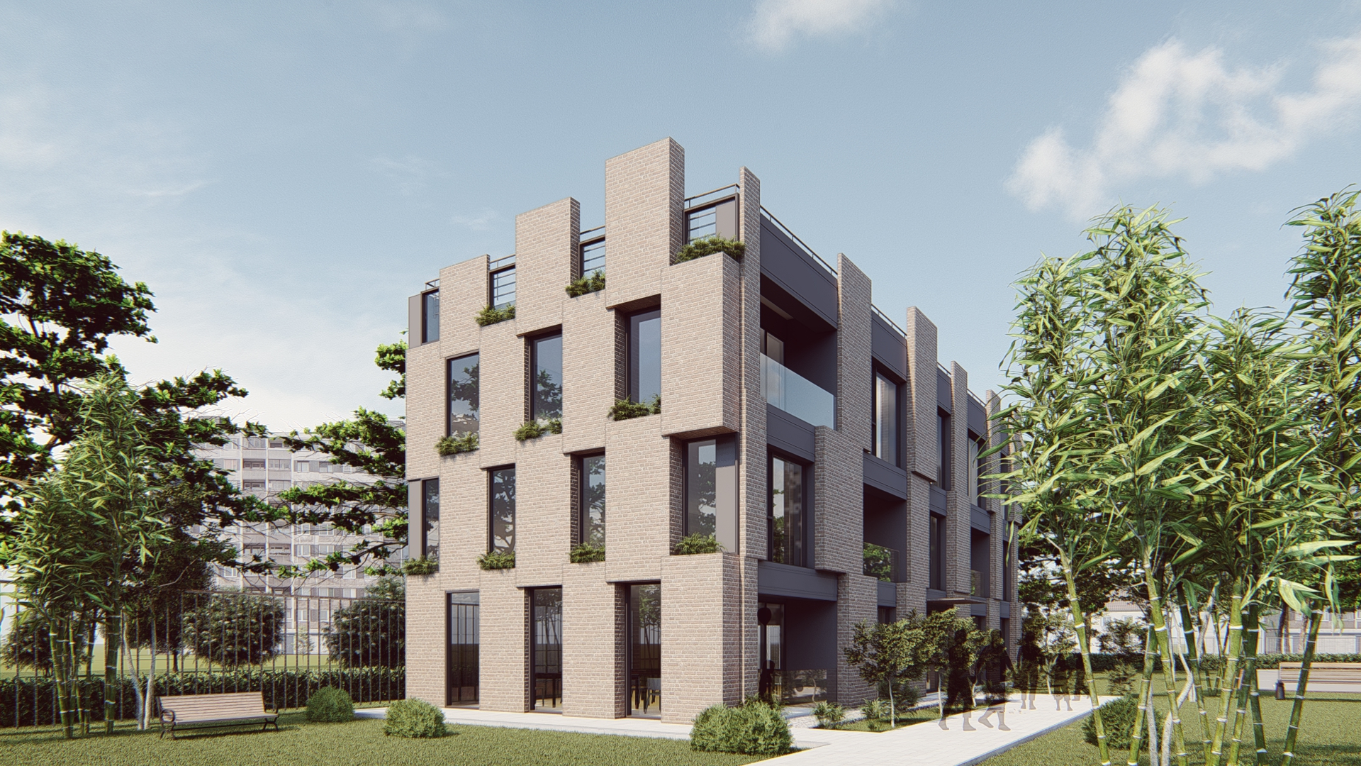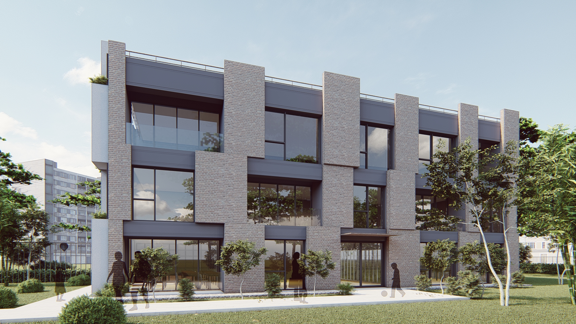 Construită într-un stil modern, clădirea este concepută cu spații puternic vitrate, care permit un flux generos de lumină naturală, și fațade finisate cu placaje din cărămidă aparentă, ce aduc un plus de eleganță și durabilitate. Jocurile de volume pe fațade contribuie la un design dinamic și atrăgător, îndeplinind cerințele investitorului atât din punct de vedere funcțional, cât și estetic și legal.