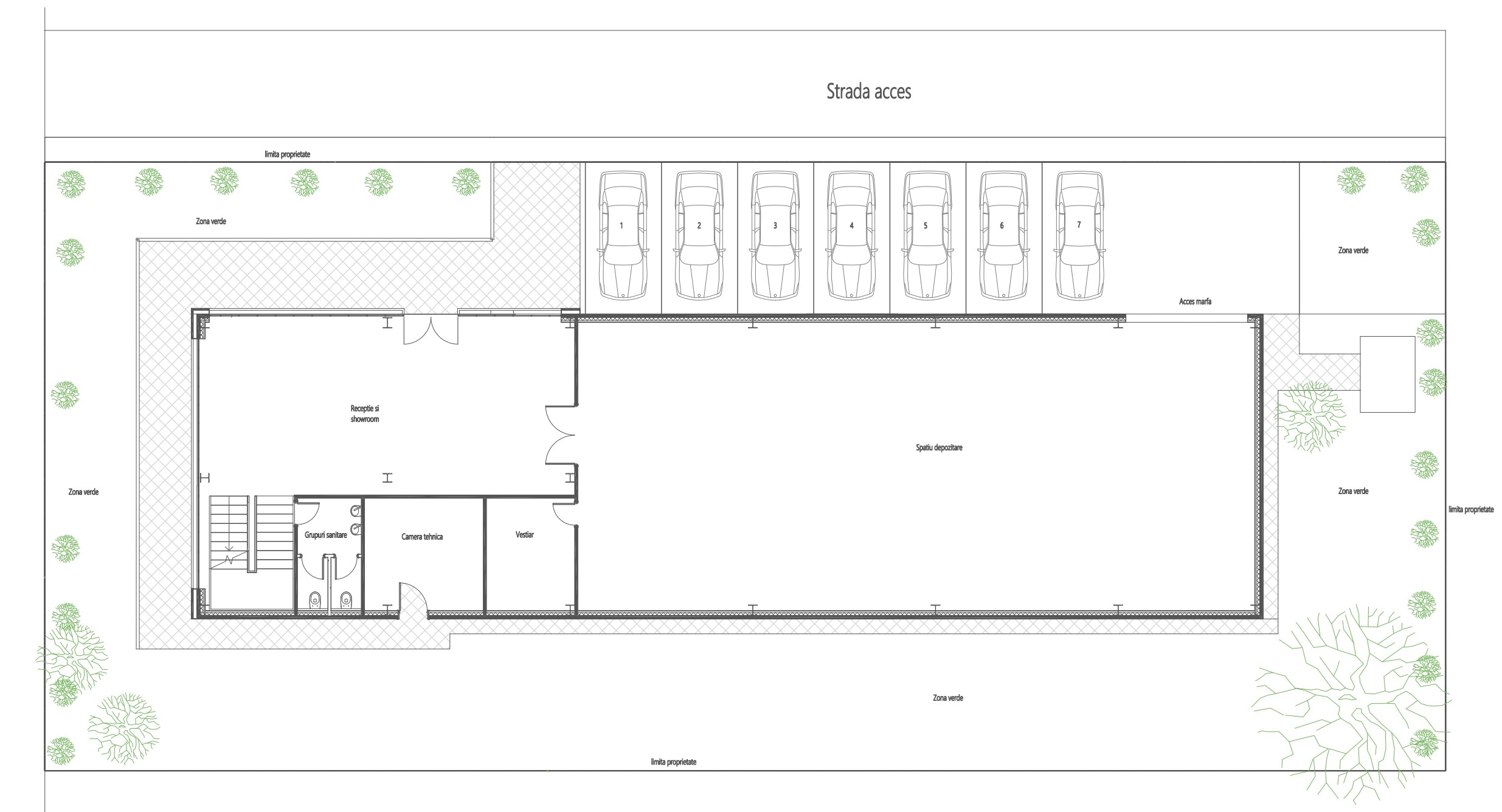 Cu o suprafață construită de 500 mp și o suprafață desfășurată de 590 mp, aceasta oferă un spațiu de depozitare generos de 350 mp și un spațiu dedicat pentru birouri și prezentare de 240 mp. Construcția a fost realizată de o firmă specializată în structuri metalice și hale industriale, asigurând o execuție de calitate și respectarea celor mai înalte standarde.