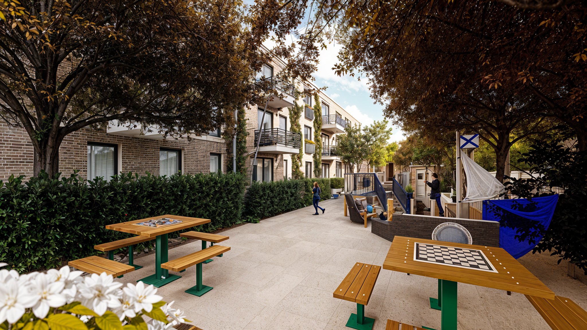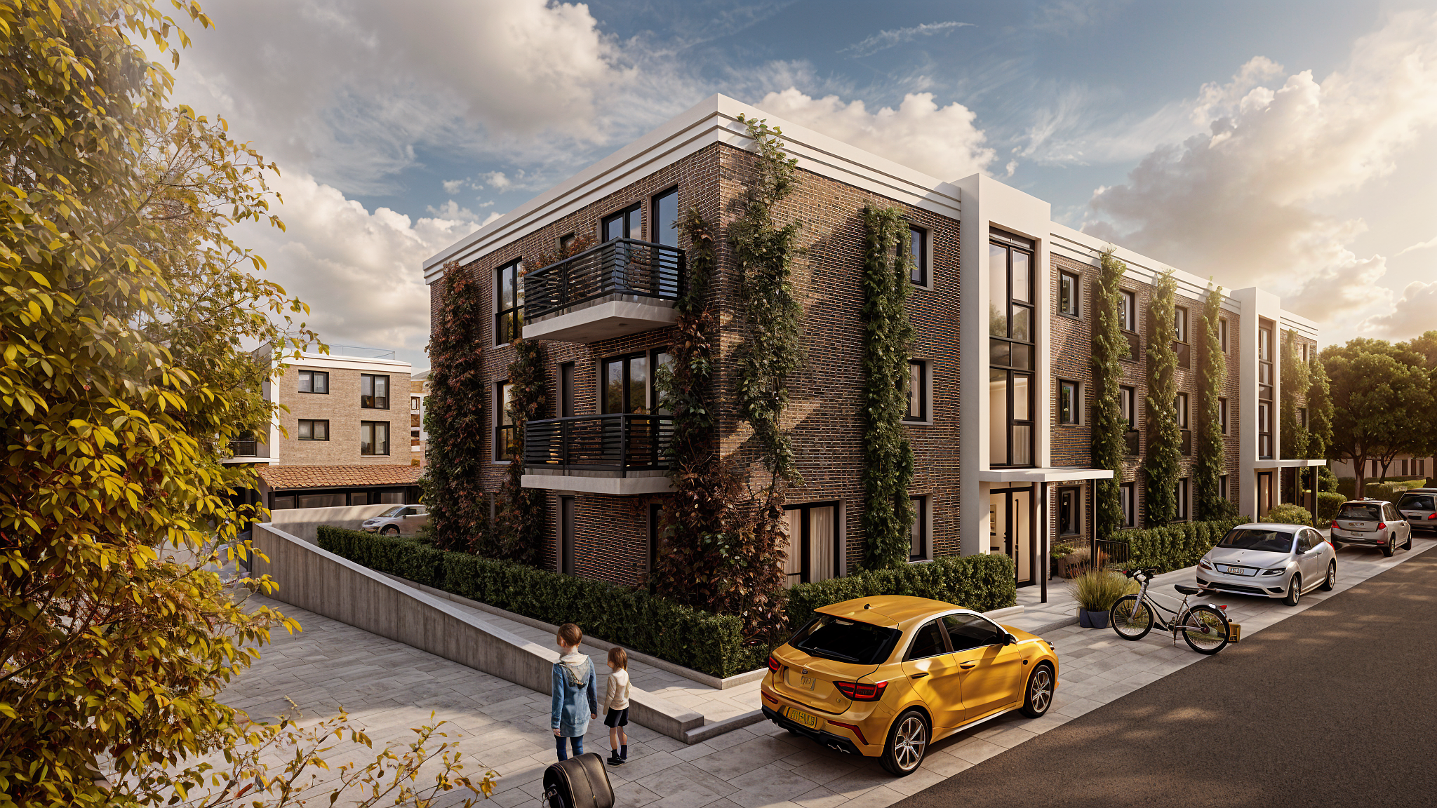 Arhitecții au acordat o atenție deosebită detaliilor locale, integrând elemente tradiționale precum placările fațadelor cu cărămidă aparentă de culoare naturală, spații plantate din abundență și ferestre înalte care asigură o iluminare naturală amplă. Aceste clădiri sustenabile și ecologice sunt proiectate pentru a crea o conexiune permanentă cu natura, având grădini interioare cu zone de relaxare, balcoane spațioase și ferestre din pardoseală până în tavan. Fațadele verzi îmbunătățesc confortul și aspectul estetic, oferind beneficii multiple, cum ar fi reducerea emisiilor de gaze cu efect de seră, îmbunătățirea calității aerului, reducerea zgomotului și creșterea biodiversității.